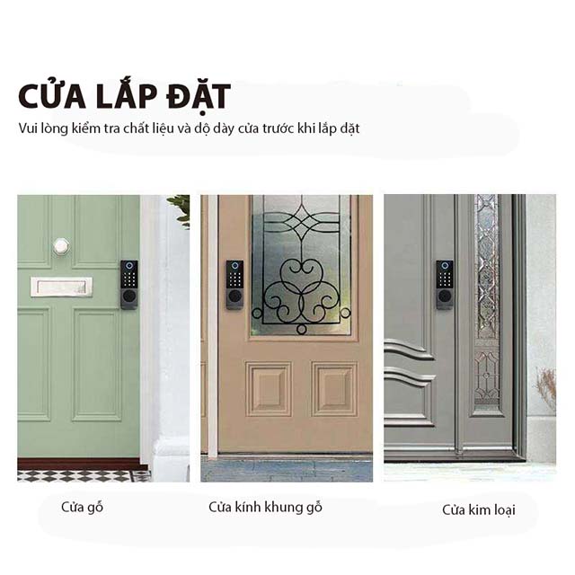 • Chức năng : vân tay, thẻ từ, mật khẩu, chìa cơ và app